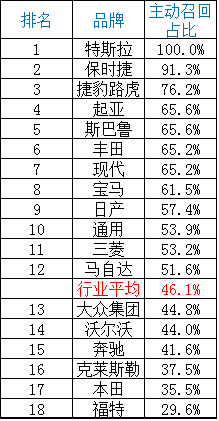 汽车召回分为国家部门强制召回和车企主动召回两种,主动召回表现出一家车企应有的社会责任感,但召回意味着揭短,还伴随着高昂的费用,利益当先的车企恐怕不会轻易发起召回。即使在召回制度成熟的美国,18家车企平均主动召回仅46.1%还不到一半。