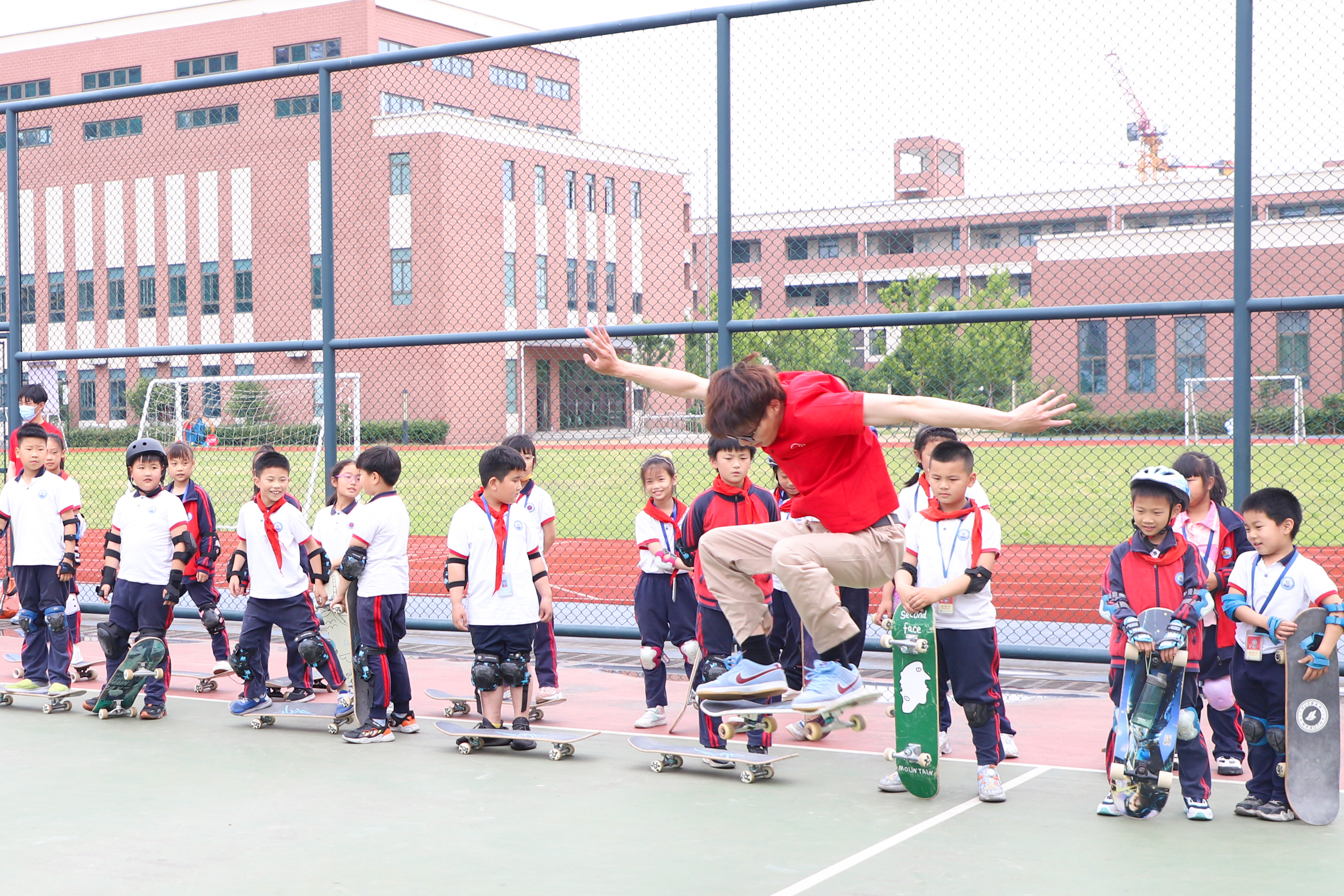 “虽然教的动作技巧并不难,但让我感受到了一份沉甸甸的责任”主讲滑板动作技巧的廖嘉雯说,孩子们对她的信任,海韵小学老师们对她的认可,都让她感到特别开心。已经满头大汗的篮球队“助教”胡浩辉也很满足,“看到孩子们能学会我教的运球技巧,自己也特别有成就感,这也激励我要把球技练得更精。”