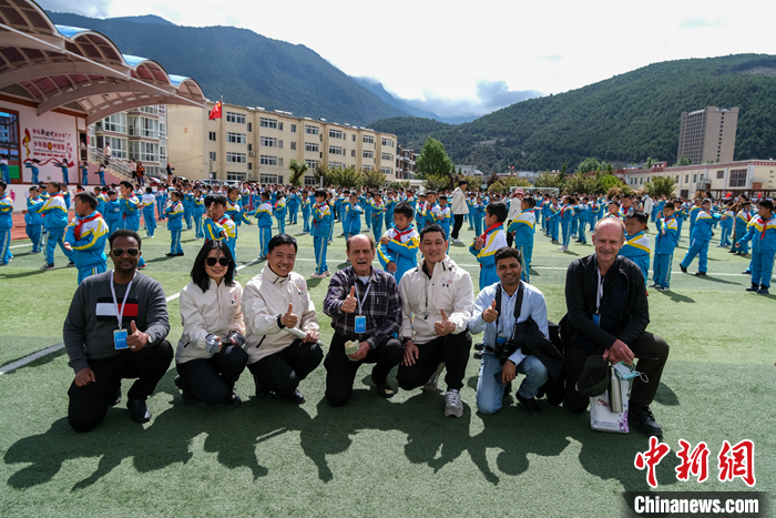 由尼泊尔、缅甸、菲律宾、莫桑比克、斐济、委内瑞拉、印度尼西亚、孟加拉国等多国驻华大使、公使,以及外籍专家、学者等组成的团队18日在西藏自治区林芝市第二小学参观访问,现场听孩子们弹奏扎念琴、体验藏文书法等。