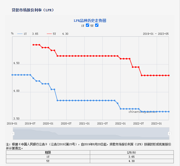 今日上午,中国人民银行授权全国银行间同业拆借中心公布,2023年4月20日贷款市场报价利率(LPR)为:1年期LPR为3.65%,5年期以上LPR为4.3%。以上LPR在下一次发布LPR之前有效。