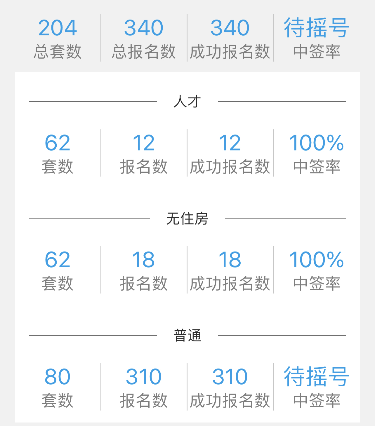 根据宁小通显示,仁恒江湾世纪本次共成功吸引了485组买房人报名,其中人才46组、无房37组、普通402组,中签率约16.49%,平均6人抢一套。其中人才房中签率:34.7%;无房中签率:64.8%; 普通中签率:9.6%。