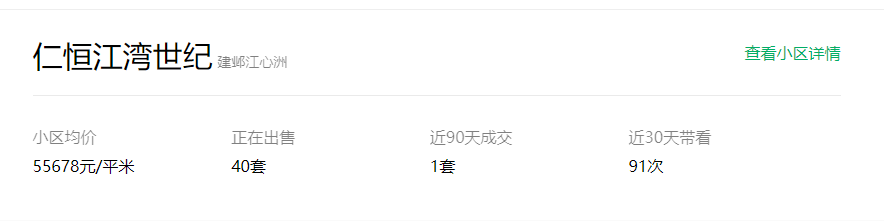 根据二手网站显示,目前该小区二手房挂牌价为55678元/㎡,有40套房源在售,近期成交1套房源,建面179.43㎡,成交总价1030万,成交单价57405元/㎡。