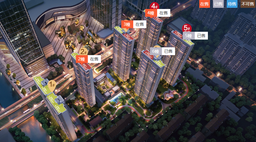 在售2-6号楼剩余少量房源,户型建面约143、175㎡,全装修销许均价约57010元/㎡,另有5400元/㎡升级装修包,首付8成起。