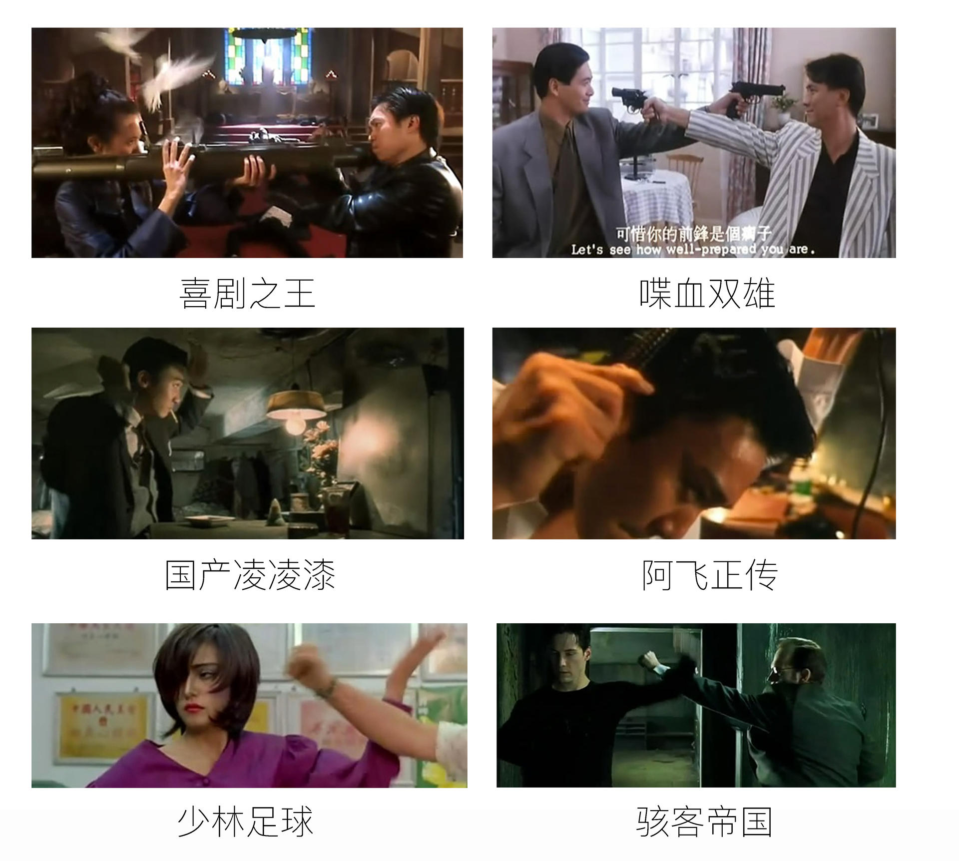 文学领域有个概念叫“戏仿”,一个戏仿作品可能会大量引用被戏仿作品,总是复制风格、主题、内容等鲜明特征。周星驰的每一部戏都有大量戏仿的镜头,大家更熟悉的说法是恶搞,他创造了恶搞类喜剧的巅峰。有时候明明是抄袭行为,但是用户并不在意,因为这种行为对他们没什么影响。