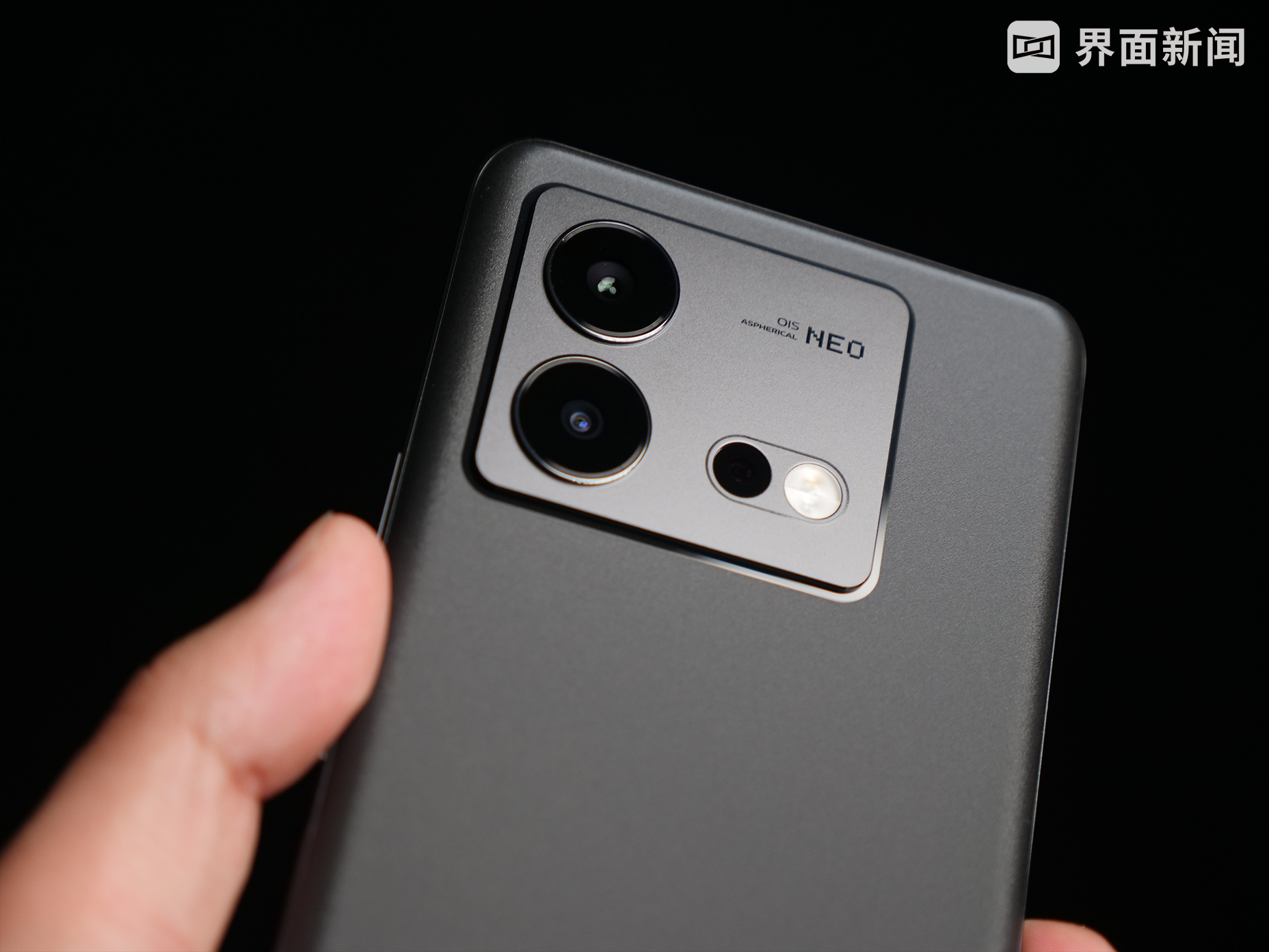 回到手机。iQOO Neo8 Pro延续了家族式的云阶设计,摄像模组内部采用了碳纤维纹理,并且印刻有“Neo”的像素字符,这也是Neo系列一贯的标志设计。