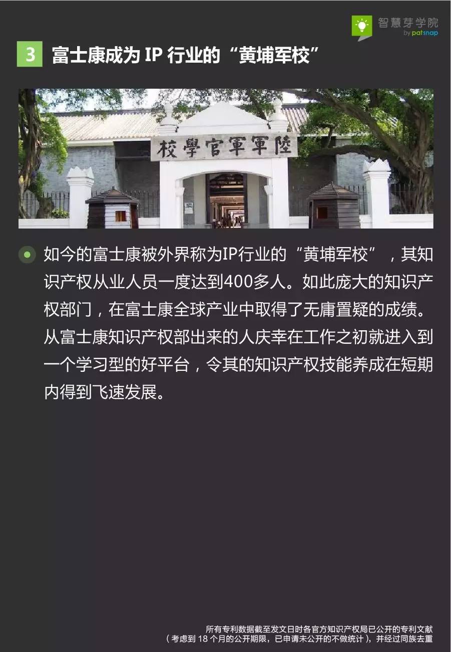 富士康的新标签——IP界的“黄埔军校”。在富士康,知识产权从业人员一度达到400多人。如此庞大的知识产权部门,在富士康全球产业中取得了无庸置疑的成绩。
