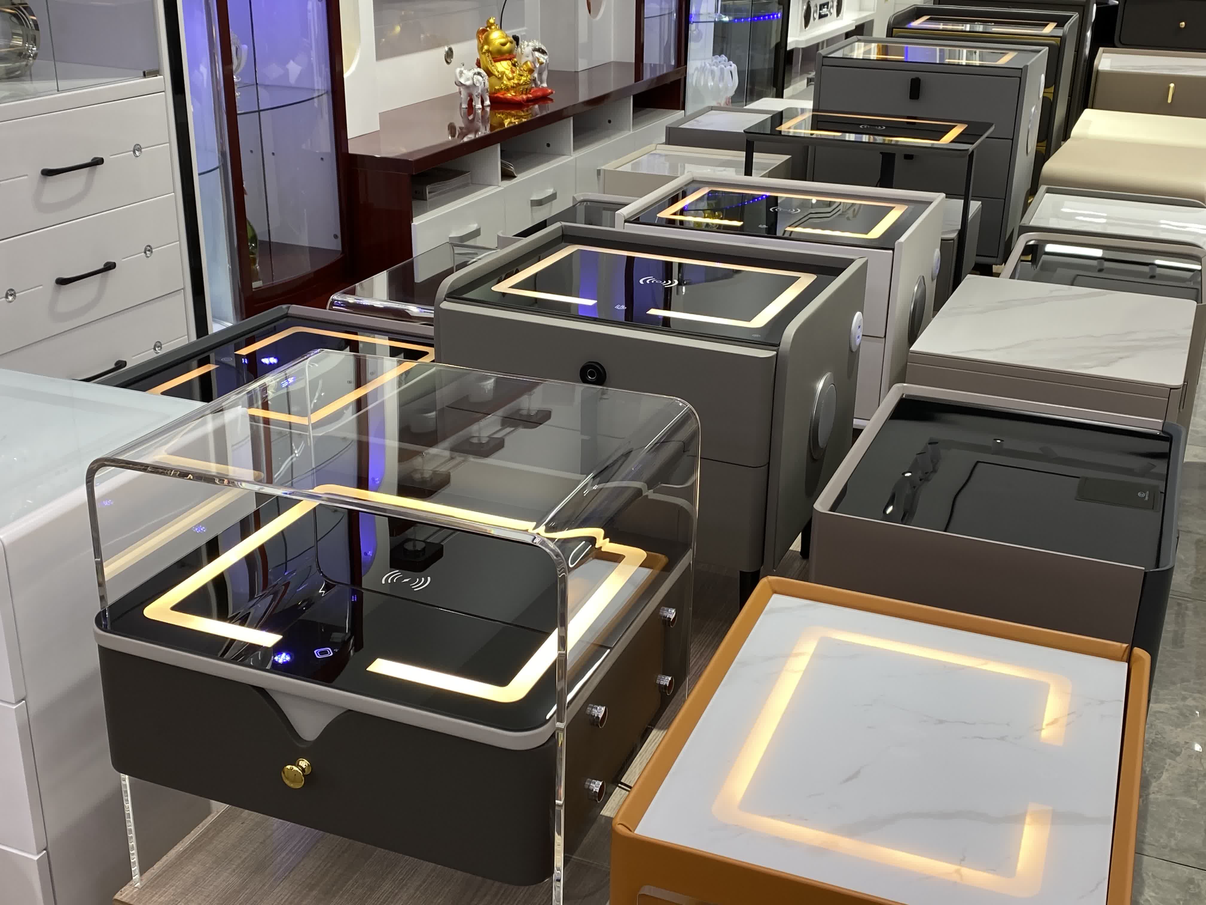 一家主要售卖床头柜的门店,已经在2020年推出了智能充电桌产品。根据门店人员的指引,把手机放在桌面上可以实现自动充电,部分产品还可以和手机实现蓝牙连接,进行歌曲外放。