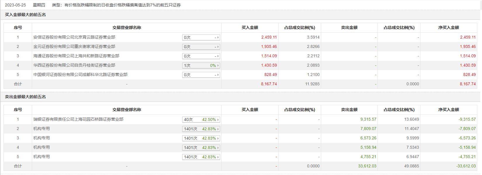 具体来看,机构合计净卖出2.43亿元。此外,瑞银证券上海花园石桥路证券营业部分别卖出9315.57万元;安信证券北京霄云路证券营业部、金元证券重庆谢家湾证券营业部分别买入2459.11万元、1935.46万元。