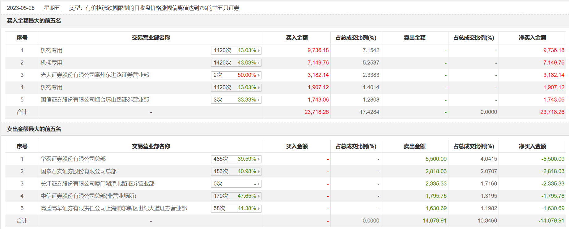 具体来看,机构合计净买入1.88亿元。此外,光大证券泰州东进路证券营业部、国信证券烟台环山路证券营业部分别买入3182.14万元、1743.06万元;华泰证券总部、国泰君安证券总部分别卖出5500.09万元、2818.03万元。