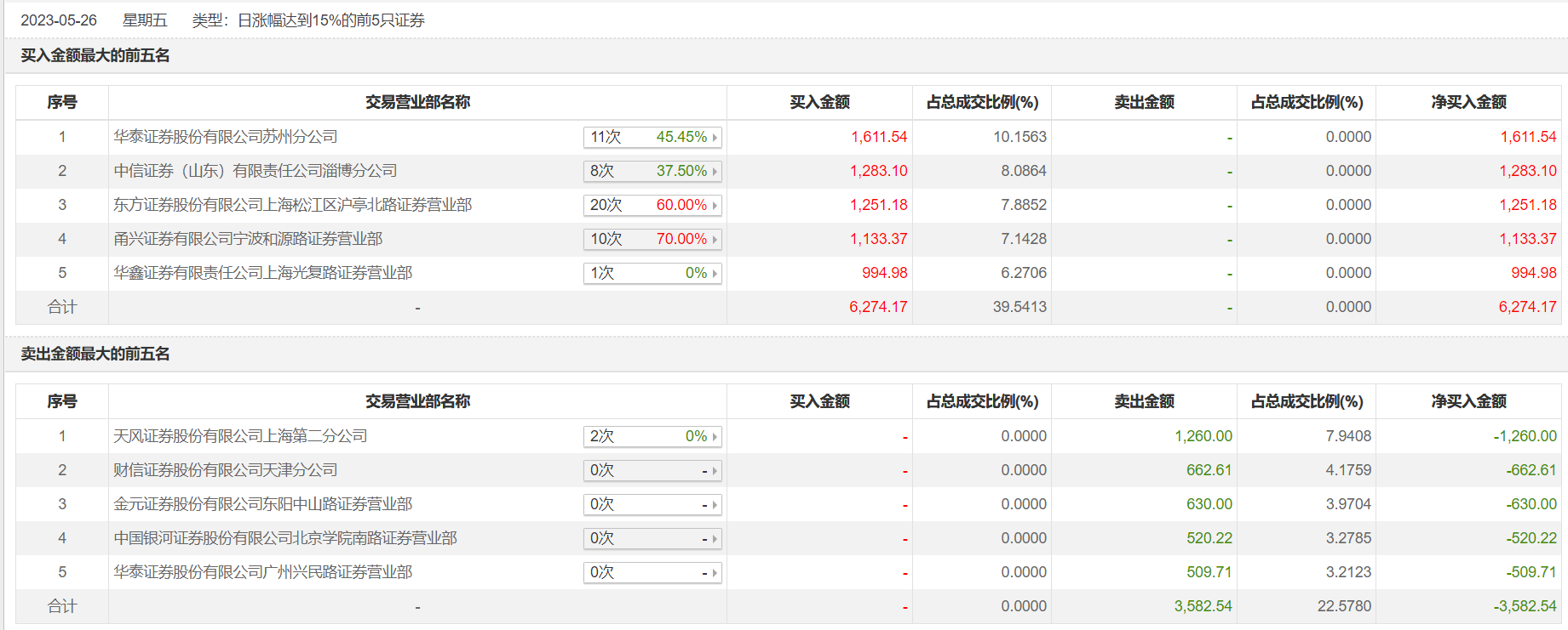 具体来看,华泰证券苏州分公司、中信证券(山东)淄博分公司分别买入1611.54万元、1283.10万元;天风证券上海第二分公司、财信证券天津分公司分别卖出1260.00万元、662.61万元。