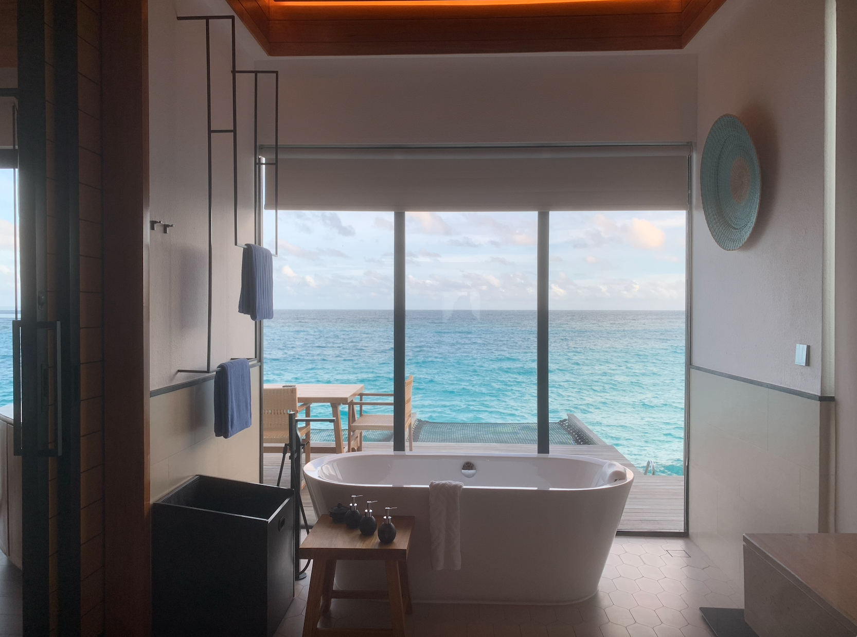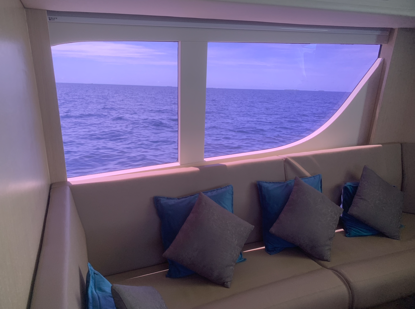 有人用“你在机场永远等不到一艘船”来形容爱而不得,显然他们没有来过马尔代夫。在马累维拉纳国际机场的达到出口,几步之遥就是酒店豪华快艇停靠的码头。赶上印度洋的西南季风盛行季,抵达当日风浪较大,好在前往阿敏吉里无需搭乘受天气影响较大的水上飞机,20分钟的快艇即可直达。一踏进船舱,清新的柠檬草精油香气让不熟悉大海性情的夜旅人感受到镇定与安心。希尔顿马尔代夫阿敏吉里全别墅度假村打破传统常规,白天黑夜任何时间都可以登岛,不论航班时间是否理想,这是一座随时可以抵达的岛屿。