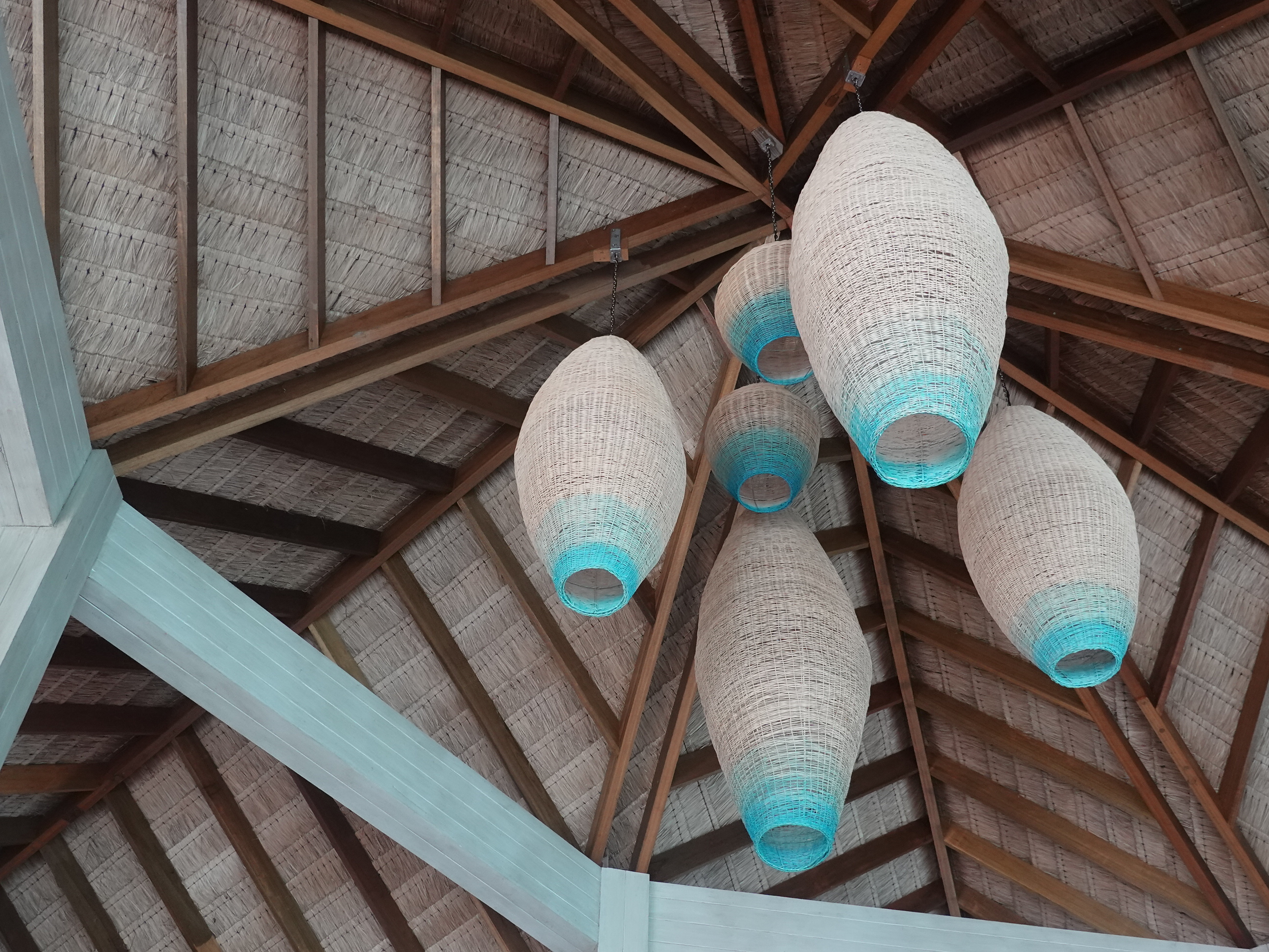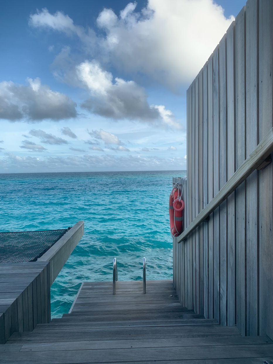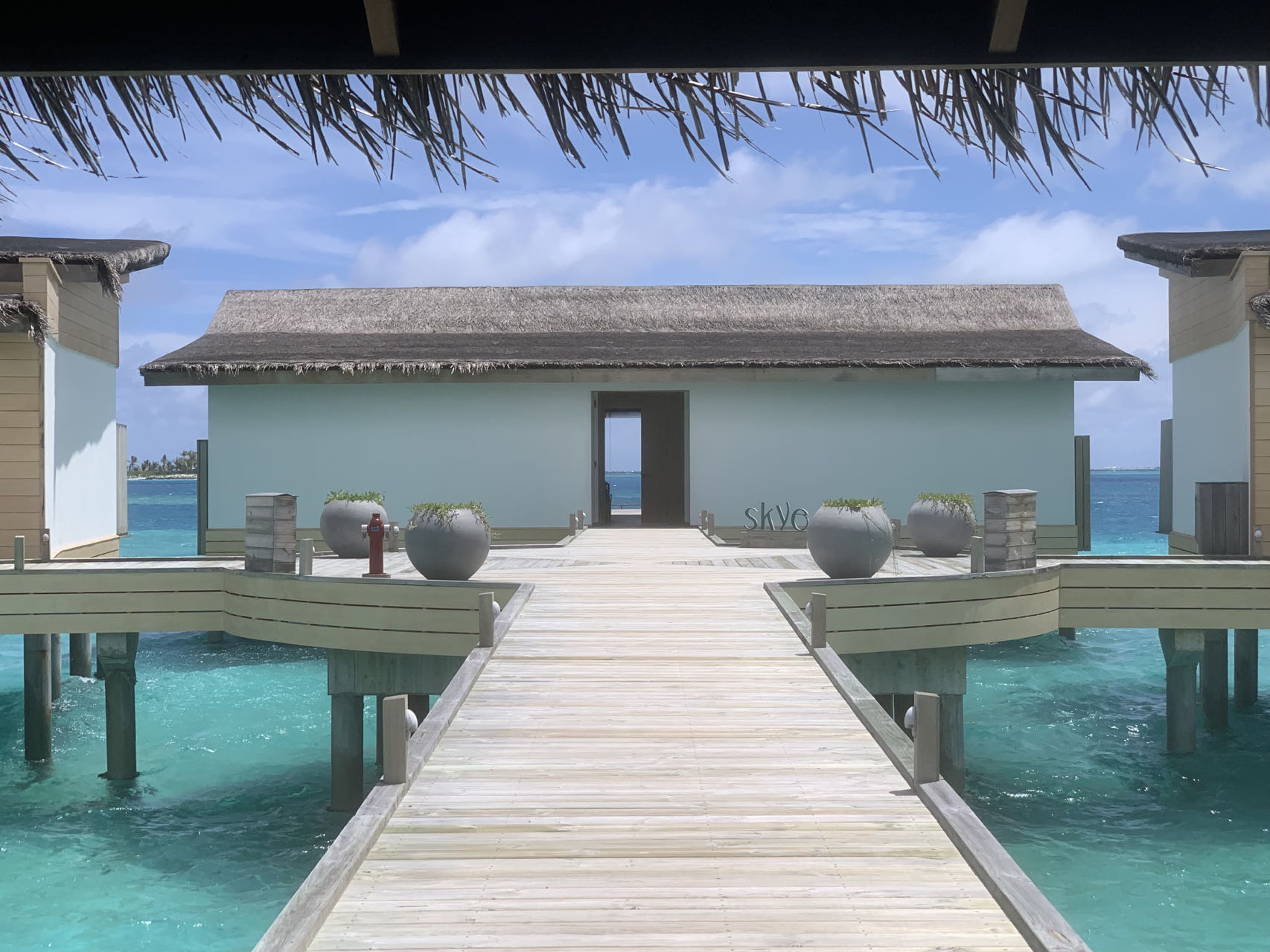 高度私密的独栋别墅之外,以渺无边际的印度洋为背景的酒店公区,本身就是蕴藏无数未知的神奇岛屿。比如,由于度假村面积较大,白天海边炙烤的阳光下不适合各处闲逛,往往会搭乘buggy在房间和餐饮休闲设施之间“点对点”移动,导致第三天一早才找到大堂的位置——原来就紧挨着我们抵达的欢迎码头,夜色中早已打过照面。