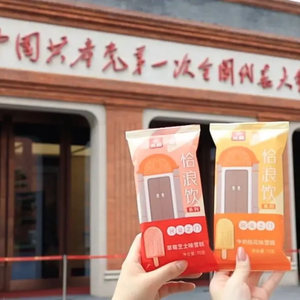 冷饮品牌光明通过与“一大文创”联名,陆续推出了小红砖冰淇淋、“恰浪饮”系列兴业之门雪糕等多款产品,“洽浪饮”雪糕以石库门建筑为灵感,通过一个小小的石库门,展现了光明的新世界,让年轻一代体验到老品牌拥抱新生代的努力,更充分体现了红色文化与上海城市文化精神的融合。