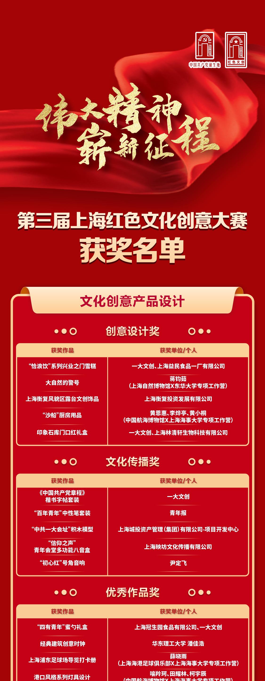 为全面推进“党的诞生地”红色文化传承弘扬工程,用好用活丰富的红色资源,2023年5月29日上午,第三届上海红色文化创意大赛颁奖典礼暨第四届大赛启动仪式举行。