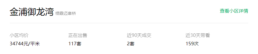 而根据链家网数据显示,目前金浦御龙湾小区的挂牌均价为34744元/㎡,目前有117套房源在售,价格集中在3.5万/㎡-3.7万/㎡。
