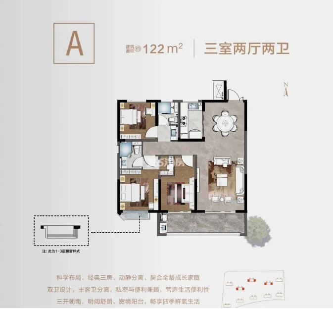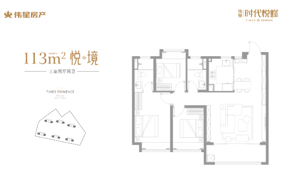建面约113㎡的3房2厅2卫