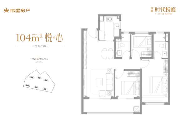 项目共规划6栋高层住宅(30-33F),其中,2、3#楼为30F,1、5#楼为32F,6、7#楼为33F,小区共计760户。整个项目打造2大户型,建面约104、113㎡,都是三房两厅两卫设计。