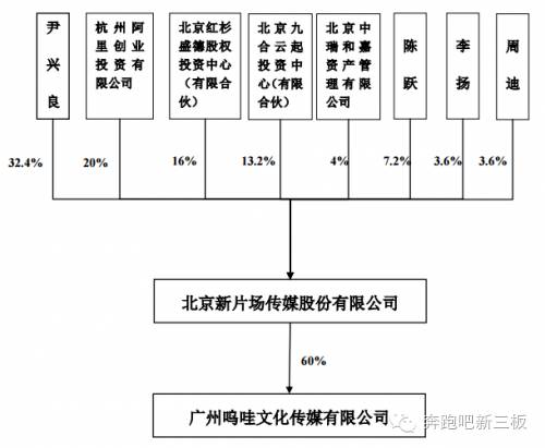 新片场是一家从3万块钱开始的公司,2012年8月,北京邮电大学毕业生尹兴良、陈跃、李扬、周迪以及北京九合云起投资中心 (有限合伙)出资3万元筹办北京海纳艾美科技有限公司。2014年5月1日,阿里以货币出资1万元成为新股东。有趣的是,从新片场的股权结构中可以看出,阿里占有20%的股权,是第二大股东。1万元就当了新片场的二当家?事实上,阿里还给了新片场许多资源和扶持。阿里影业在京宣布了为扶植青年导演创作人的“A计划”正式启动,并宣布拿出10亿元来培养影视人才,第一批的人才名单就来自新片场的网络平台。