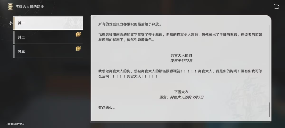 结合游戏自上线以来的相关讨论看,玩家对游戏文本的关注甚至隐隐超过了玩法、角色等部分。这些文本内容填充在游戏的每个缝隙间,连接着游戏的各个部分,使其更加完整、真实。