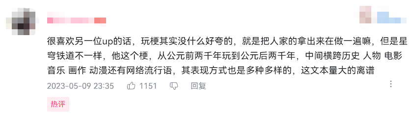 米哈游玩梗这个传统,从《崩坏学园》《崩坏三》就开始了。彼时米哈游面对的玩家多为二次元用户,游戏中也包含了许多ACG梗和要素。虽然如今的《星穹铁道》面对的玩家群体构成复杂,但其二次元浓度还是得到了二次元玩家的认可。