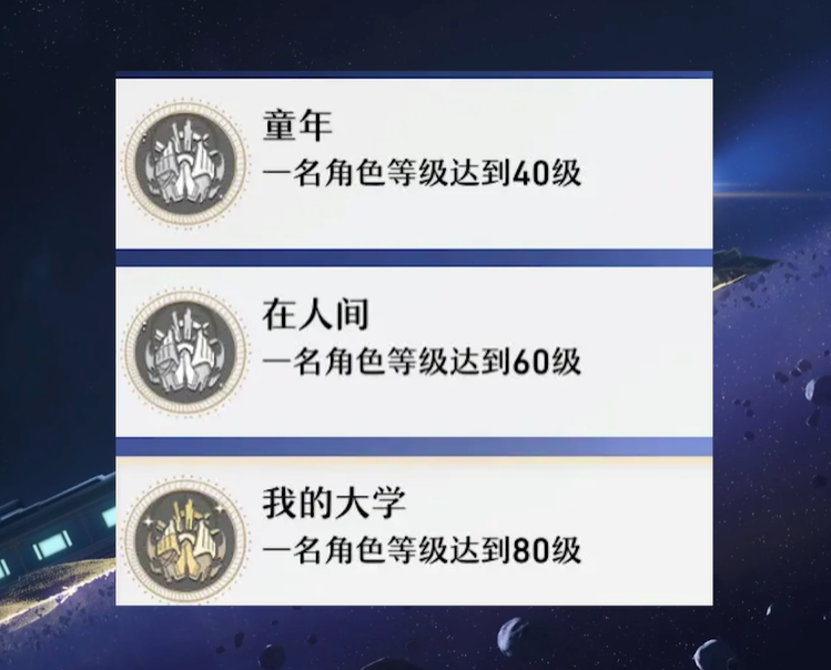 除此之外,《星穹铁道》文案对于国外文学的引用也不在少数。有玩家注意到游戏等级成就名为“童年”“在人间”“我的大学”,看着是不是很眼熟?没错,是高尔基自传三部曲。