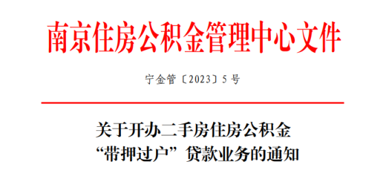 今年3月1日,南京住房公积金管理中心官网发布《关于开办二手房住房公积金“带押过户”贷款业务的通知》,即日起开办二手房公积金“带押过户”贷款业务。