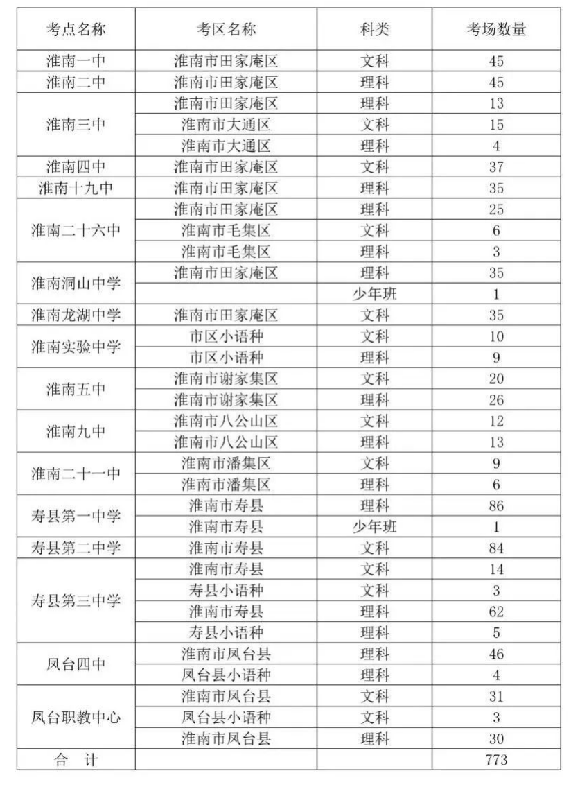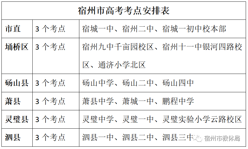 今年蚌埠市高考设市区、怀远县、五河县、固镇县4个考区,各考区考点安排如下: