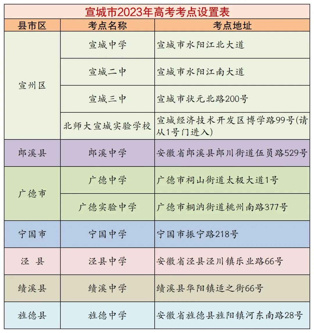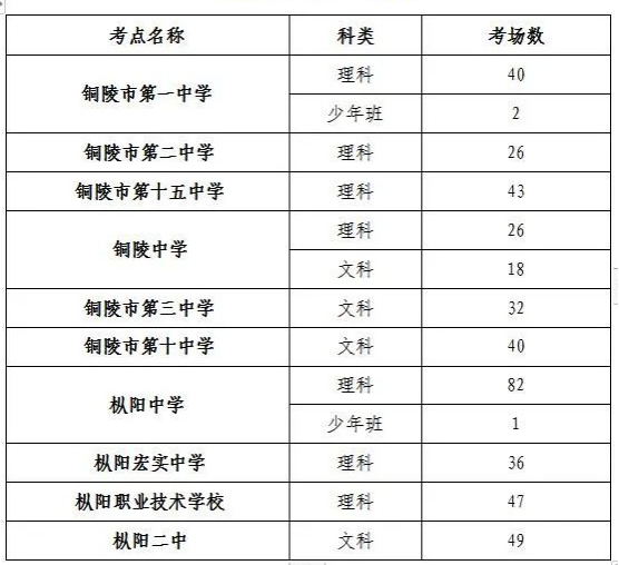 南陵县:共设三个考点,分别为安徽省南陵中学、南陵县城东实验学校、南陵县春谷中学。