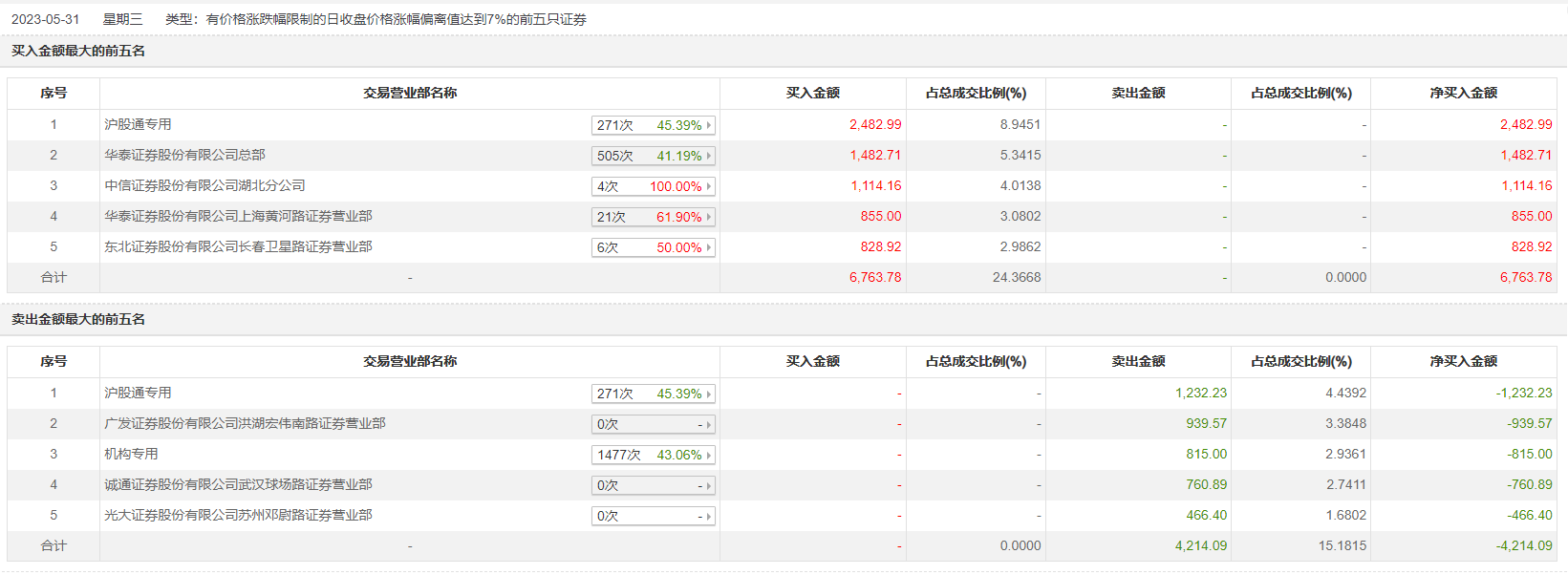 具体来看,机构合计净卖出815.0万元。此外,沪股通专用、华泰证券总部分别买入2482.99万元、1482.71万元;沪股通专用、广发证券洪湖宏伟南路证券营业部分别卖出1232.23万元、939.57万元。