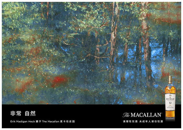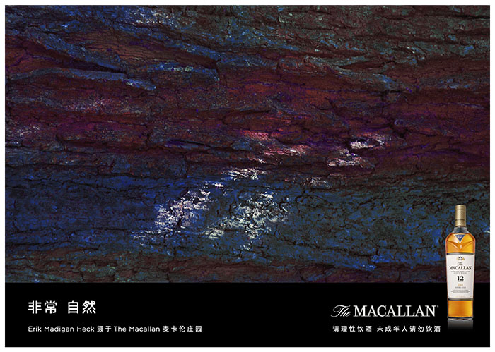 本次合作,Erik着重运用抽象风景画与静物摄影相结合的艺术手法,从麦卡伦庄园的自然环境中汲取灵感,通过视觉创意表达出麦卡伦“育于自然”的纯粹风味,礼赞大自然之美。