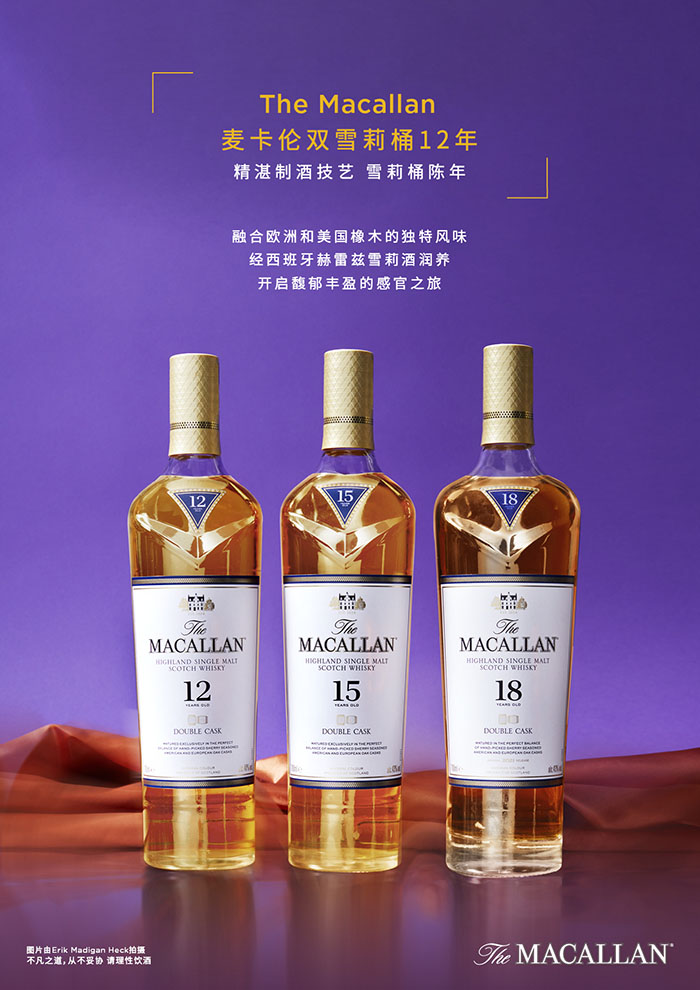 作为麦卡伦产品阵容的核心,双雪莉桶系列采用了西班牙赫雷兹雪莉酒润养的欧洲和美国橡木桶,由制酒师按照精准的比例组合,采用“非过桶”的方式陈年,这种独特的工艺也成就了双雪莉桶威士忌的新风格。