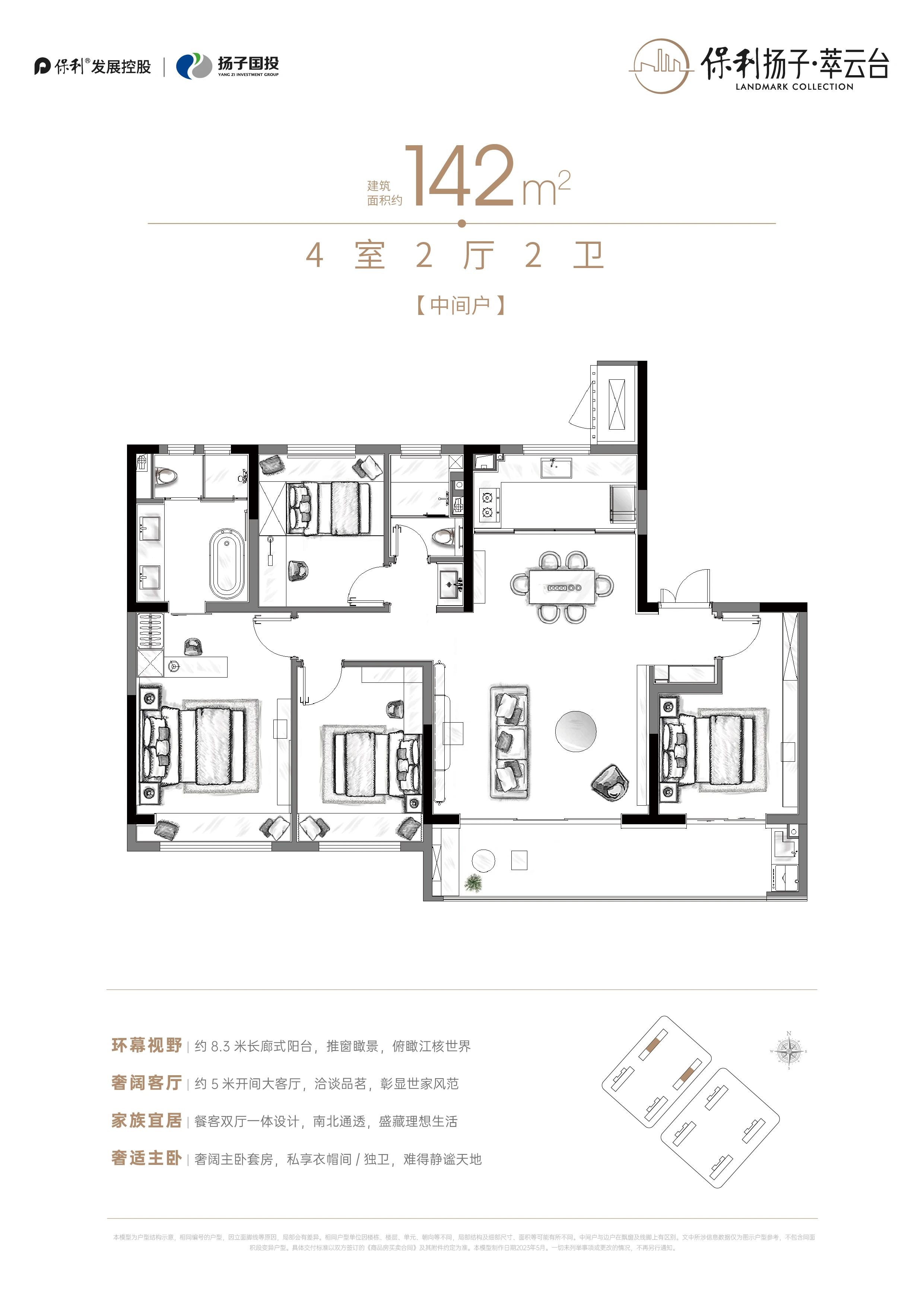 即将加推的4号楼,是项目仅有的2栋小高层中的一幢,仅有142㎡这一个户型,十分纯粹。且户型很优质,居住舒适度高,适合想在江核置业的改善人群。目前建面约142㎡样板间已经开放。