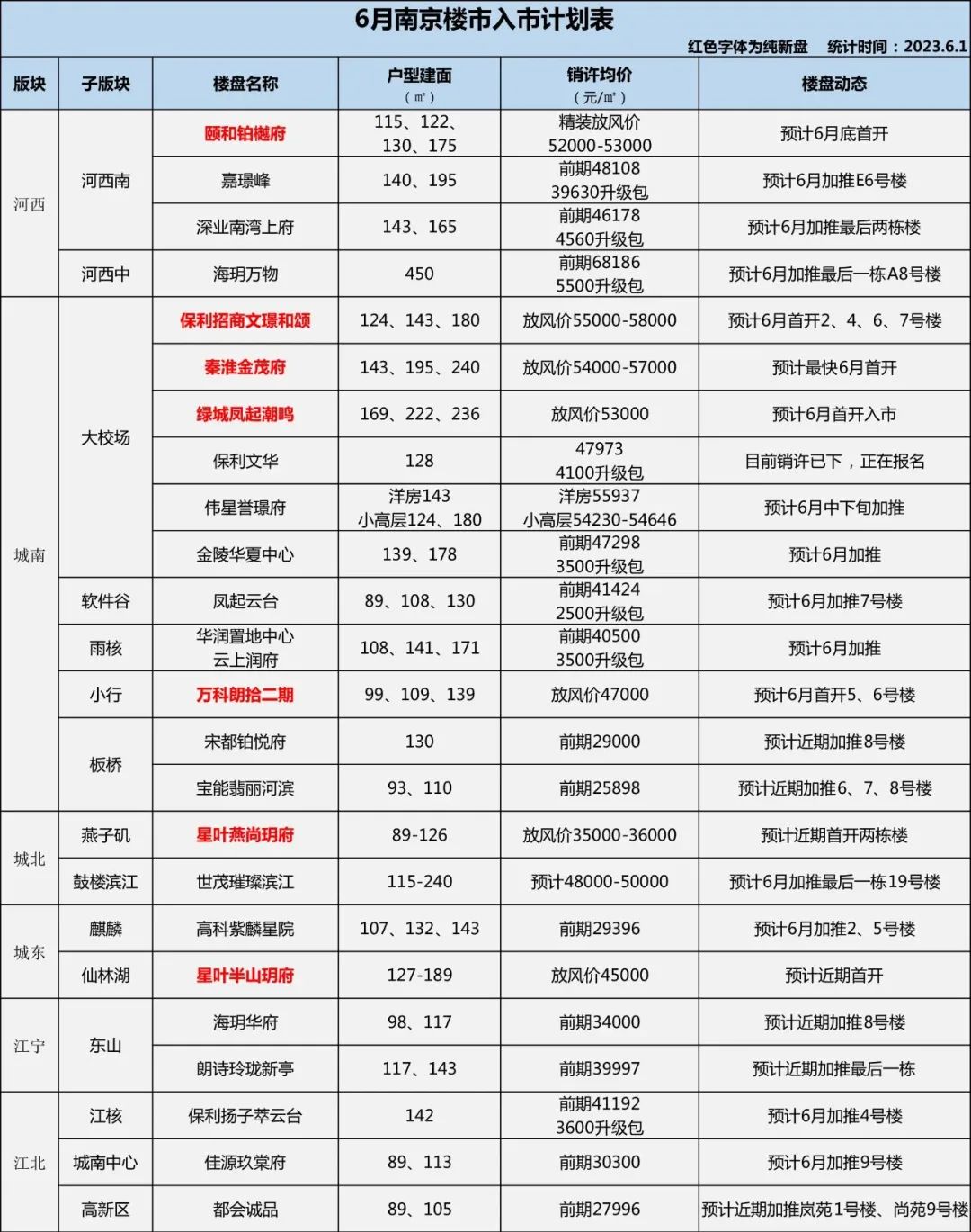 5月底,南京诞生了一批摇号盘,楼市着实又火了一把。据本站统计,南京6月预计有24家楼盘入市,涉及河西、大校场、小行、鼓楼滨江等热门板块,其中预计还有7家重磅纯新盘即将首开!