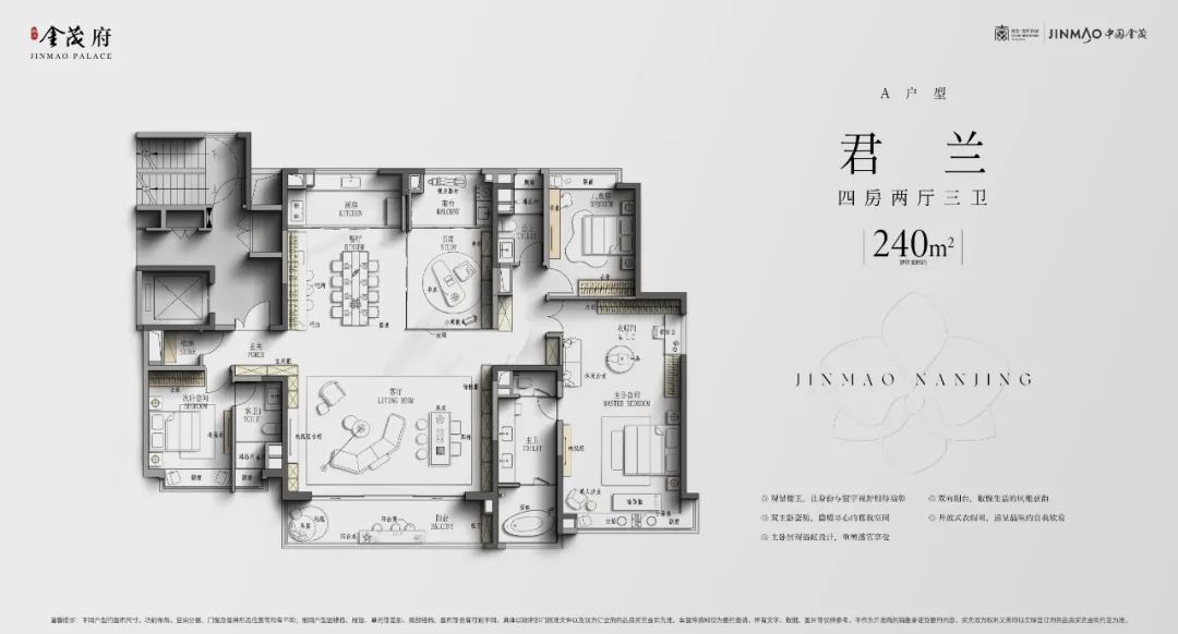项目刚于5月30日晚,在钟山国际高尔夫酒店盛大开启了“看一朵兰花的绽放”金宴南京暨秦淮金茂府新品发布会。据悉,项目预计将于6月首开上市,总价预计800万起步。