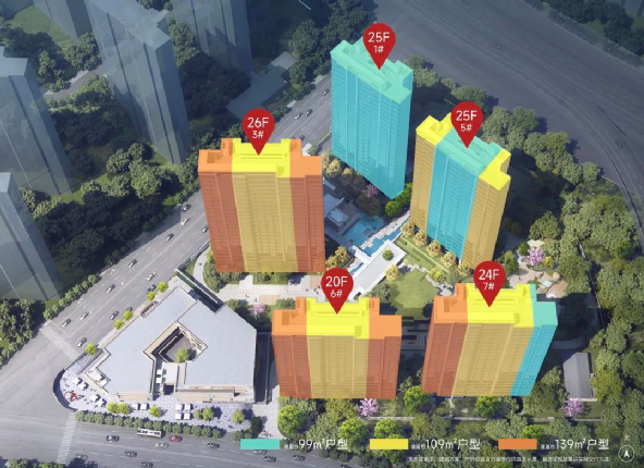 据悉,项目将打造建面约99㎡、109㎡、139㎡三种主力户型,精装修交付,无升级装修包。