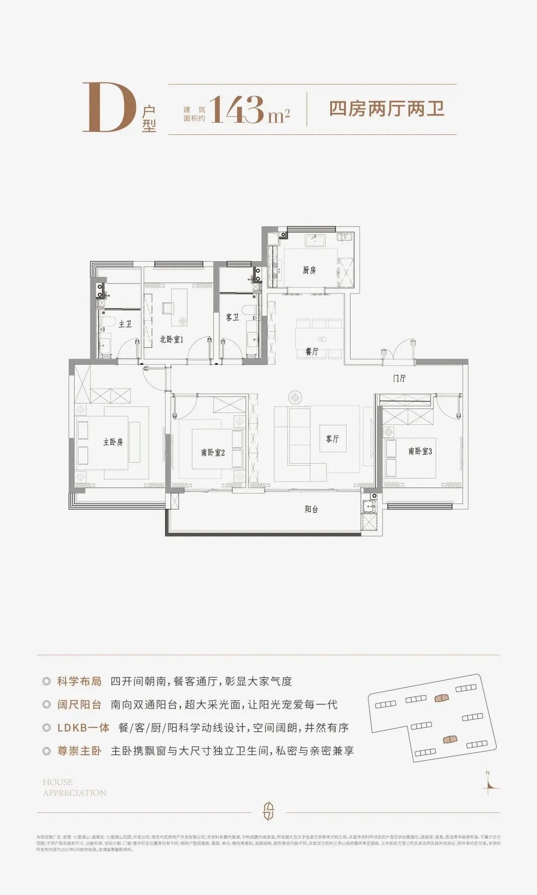 在户型设计上项目将打造建面约99、118、130、143㎡四种户型,同时项目的户型得房率高达82%!