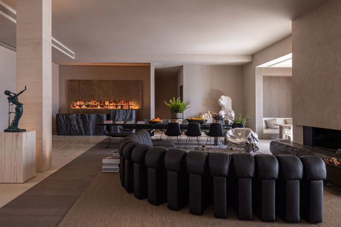 会客厅的核心位置,摆放了一组瑞士设计家具世家de sede出品的经典之作——Tatzelwurm/DS600沙发。这件大型S型沙发,是设计巨匠UeliBerger、Eleonore Peduzzi-Riva、Heinz Ulrich和Klaus Vogt于1972年创作的家居力作。
