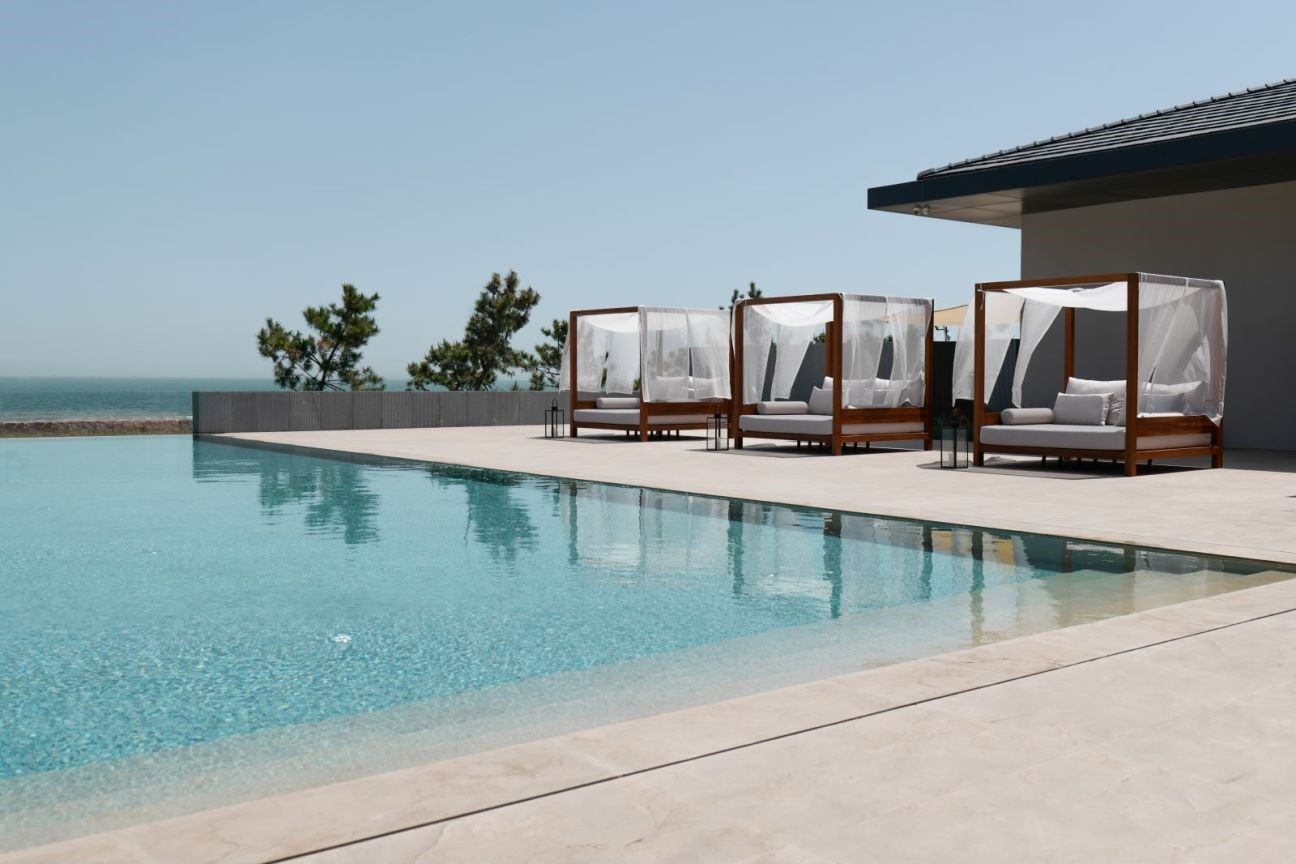 EOSO雲頌酒店主体建筑是一座外形简约、平面呈U字构造、直面碧海的两层楼翼,室内兼具了私邸的静谧和当代艺术馆的美学理念,挑选和定制的艺术品呈现其间,成就充满启迪的隐逸之旅。