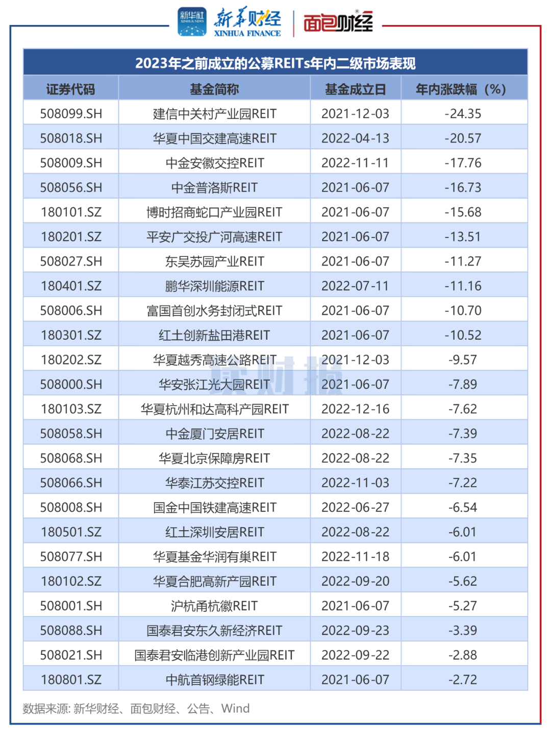 图1:2023年之前成立的公募REITs年内二级市场表现