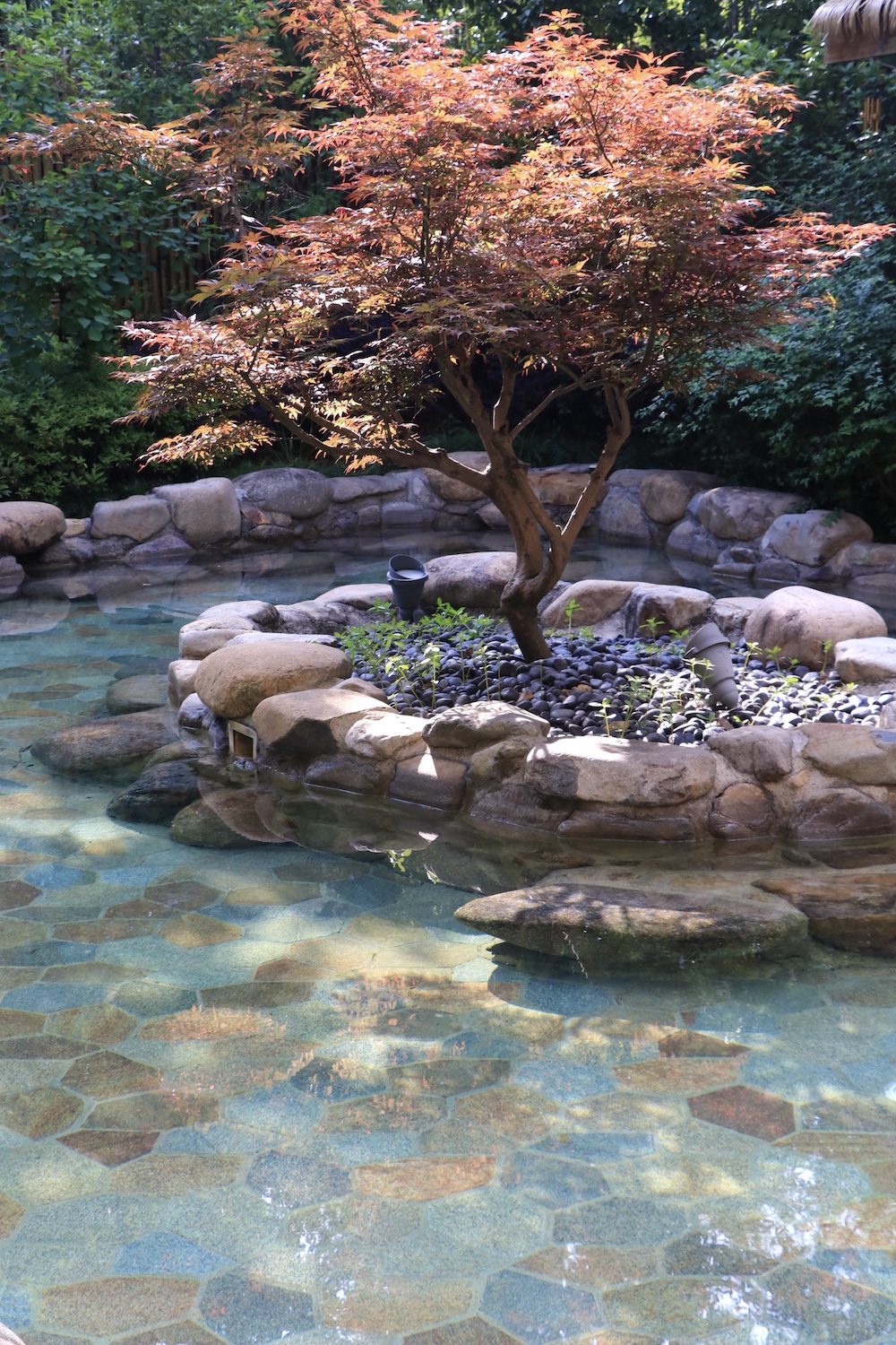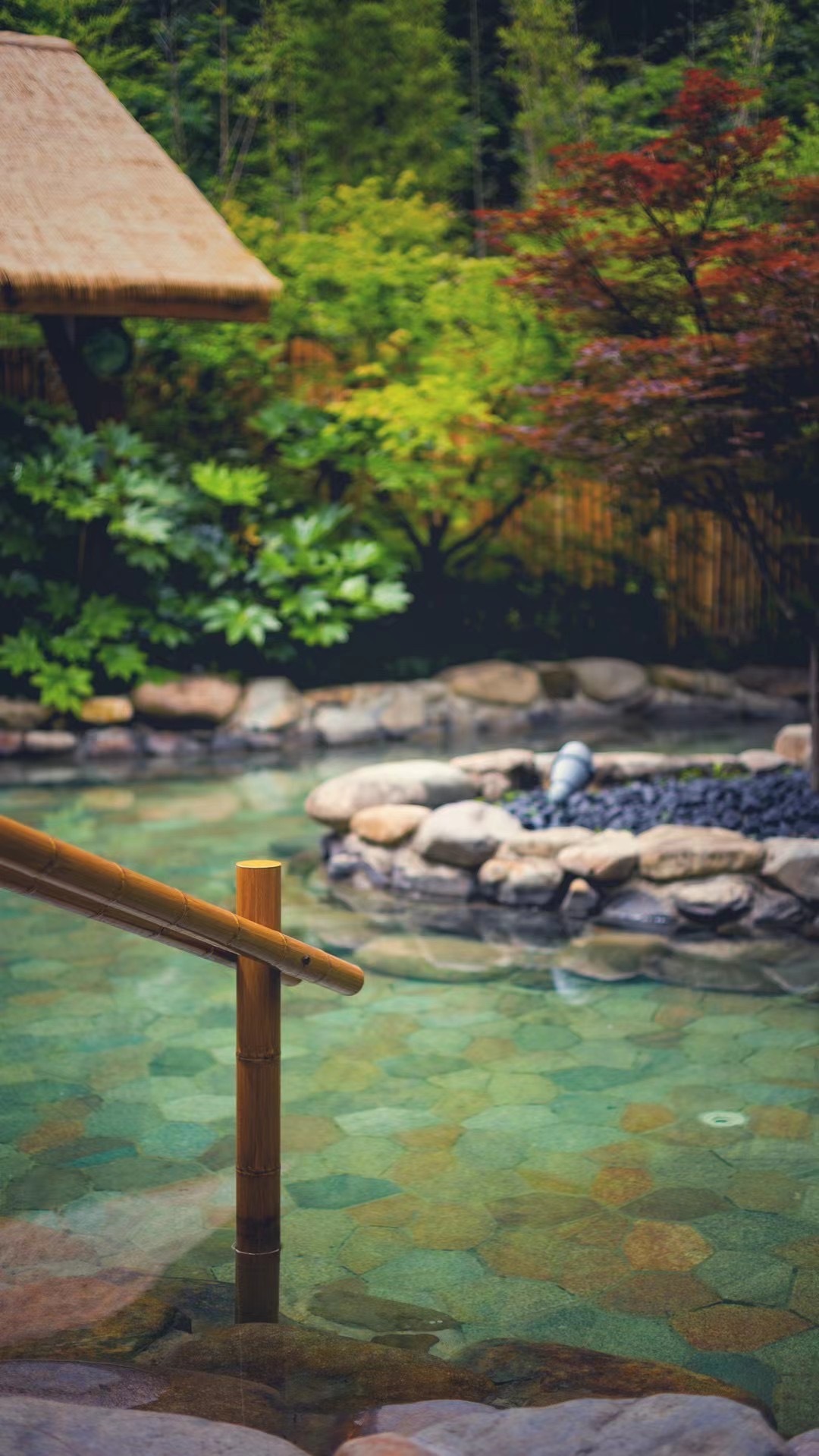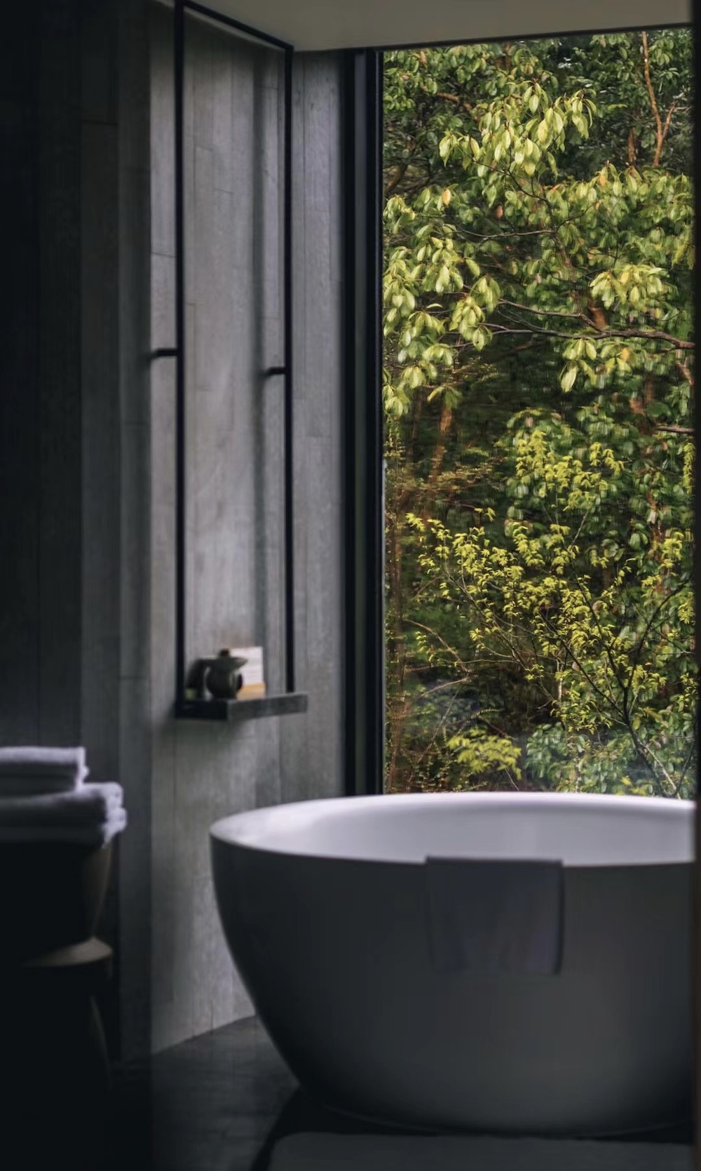 酒店拥有室内外纯天然温泉泡池,户外借用日本汤池设计风格,竹林围绕,山石构建;室内则采用当代简约风格,超大落地窗将山景引入室内,呈现一汤一心境,一池一人间。