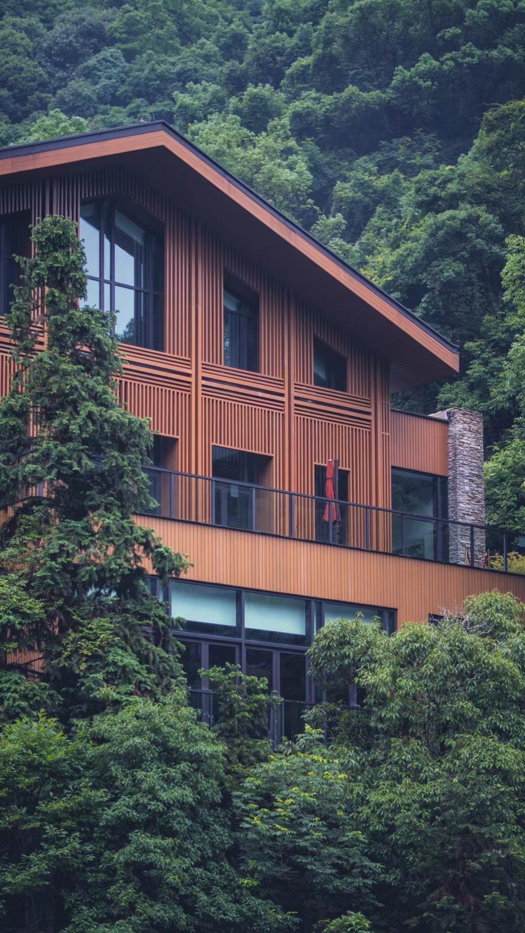 宁海安岚的设计风格受传统文化与海派精神的双重影响,采用现代的设计理念诠释东方传统文化的内涵,其整体设计利用竹海、温泉、山谷三大自然元素,秉承保护自然、山地景观落地的理念,还原自然、返璞归真,帮助人们在深山竹海中达到身、心、灵的平衡统一。
