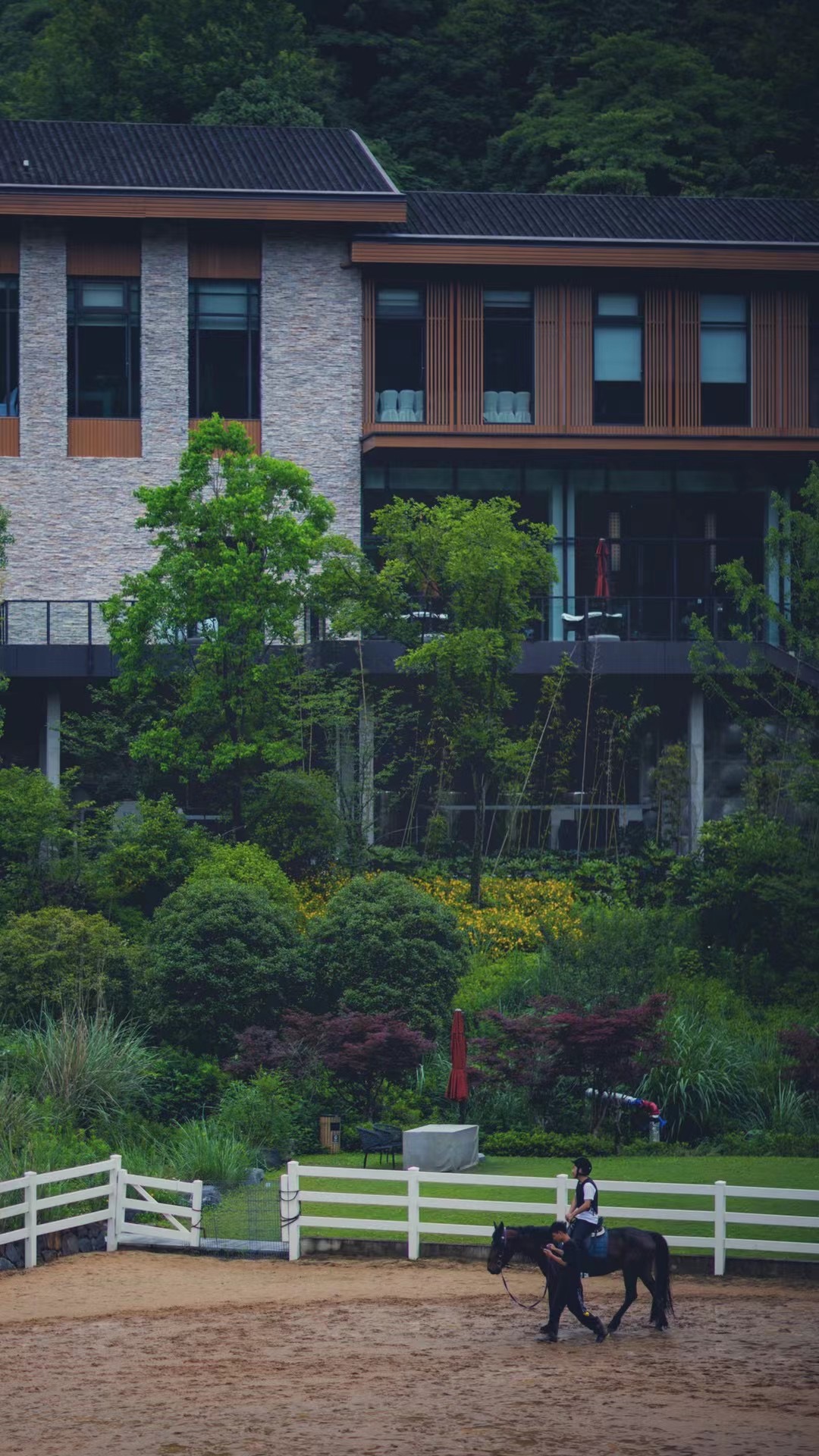 此外,宁海安岚拥有中国唯一纯美式牧场经营者所运营的无疆牧场。在此,既可以欣赏马术表演也可以尝试驭马驰骋,亦或牵着身高不足一米的矮脚马在草地上散步。马术中心还设置了专业马术训练课程,进行系统学习后有机会获得AQHA和北京马协的双重认证。当然,牧场不只是马的天下,圈养的小香猪和大白兔,都会是动物爱好者的心爱对象。