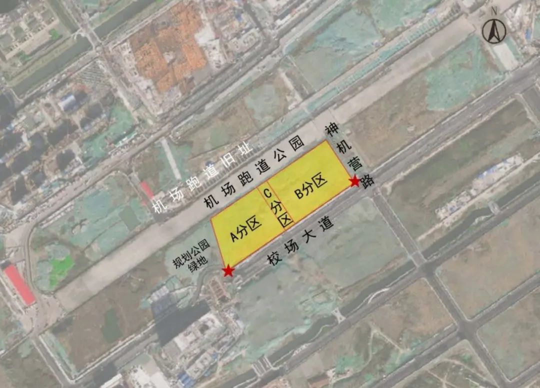 该地块位于秦淮区南部新城核心区城市客厅机场跑道公园南侧,地块北至机场跑道公园,南至校场大道,西至规划公园绿地,东至神机营路。