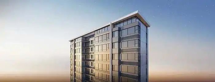 在立面的大早上,项目为了与机场跑道公园相融,项目采用不规则矩阵式模块,用直线艺术与机场跑道相呼应。
