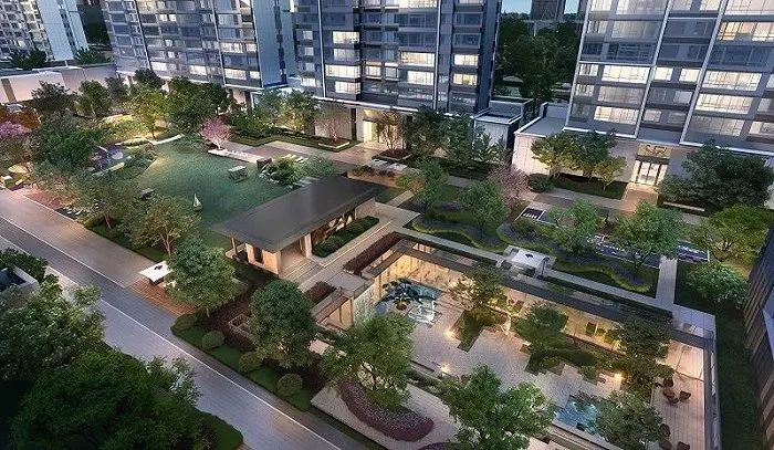 在景观方面,项目的主入口长约40米,还有约100米的归家轴线,中央景观包含水光云厅,光氧走廊、休闲日假水庭、生活展厅、书吧、多功能健身中心等。