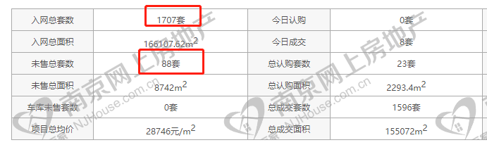 此前项目加推的为 C、D两幅地块,根据南京网上房地产显示,项目共入网1707套房源,截止发稿项目仅剩88套未售,去化近95%。