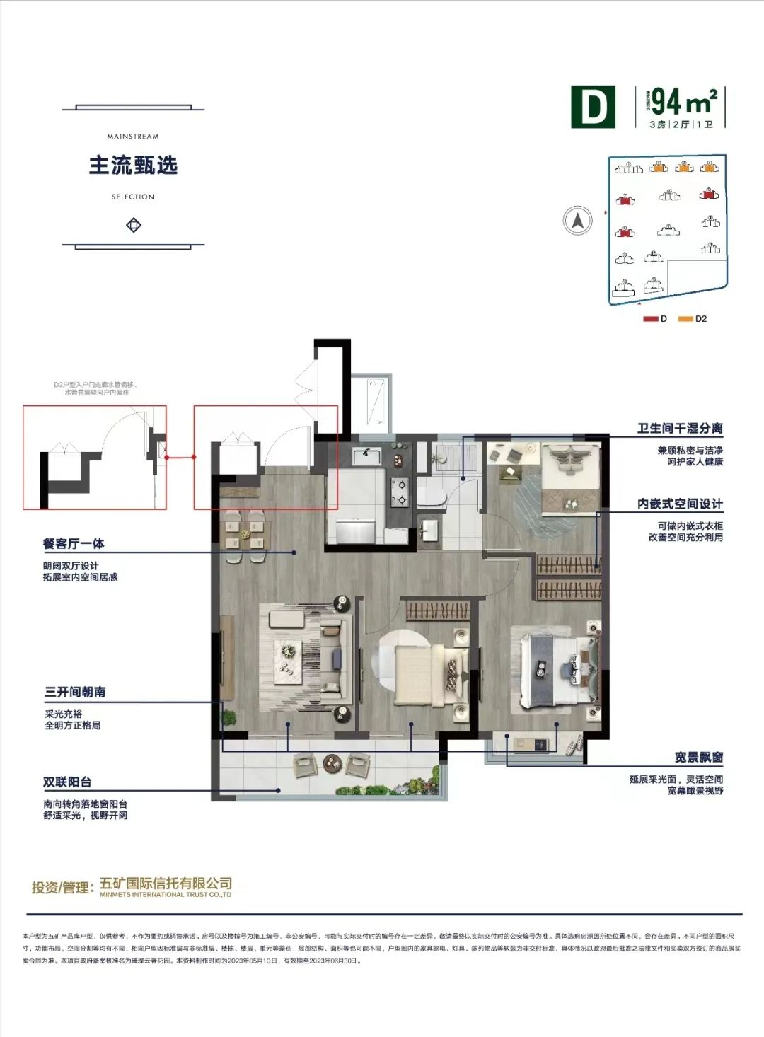 作为此前最受欢迎的高性价比户型,建面约94㎡户型方正通透,做到了三开间朝南,且是南向超大阳台;餐客厅一体化,全屋动静分区,U型厨房设计,为家居生活提供更多活力,满足全龄人居家庭的不同需求。