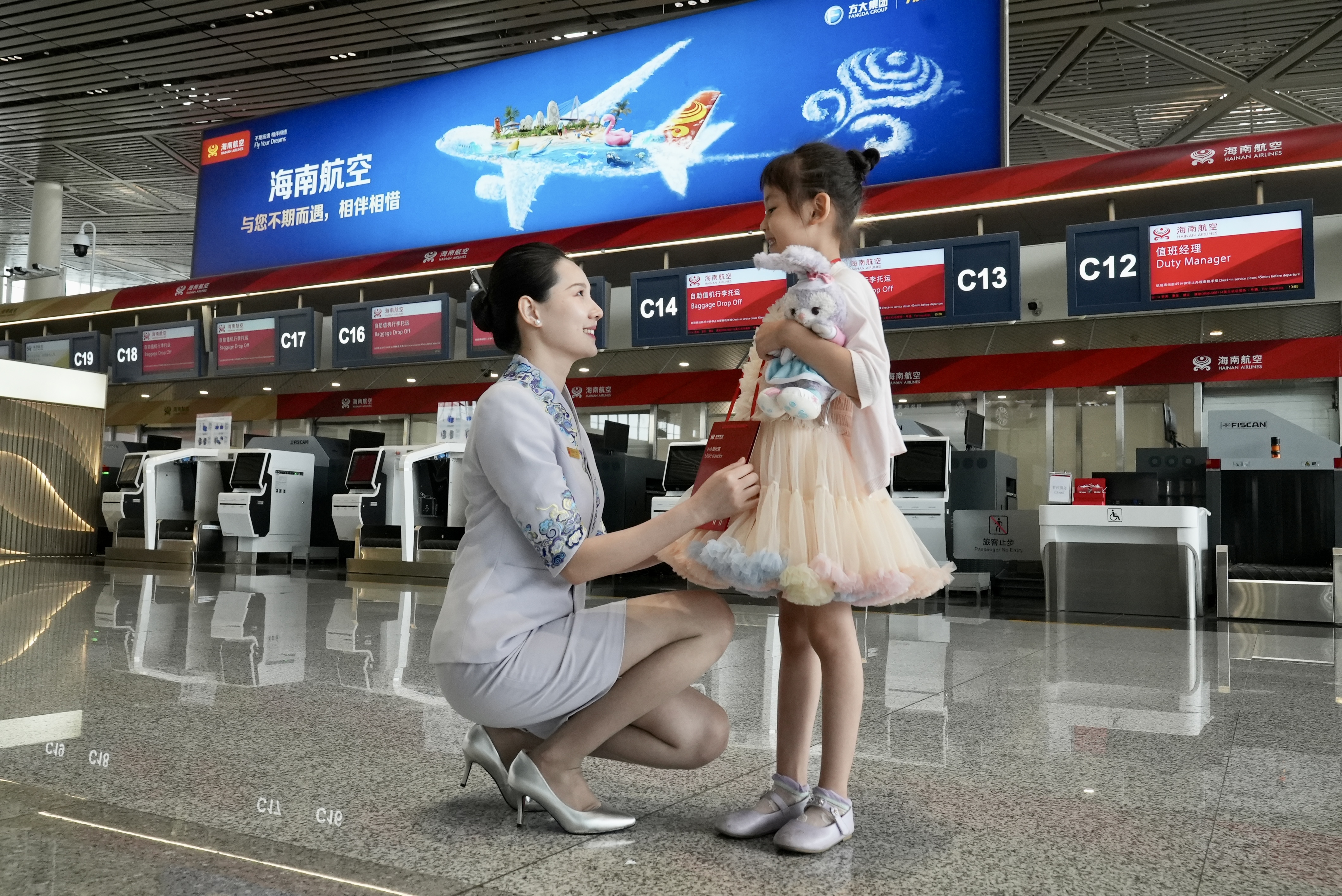 例如,海南航空地面工作人员会为无陪儿童胸前挂上“小小旅行家文件袋”,为托运行李栓挂“优先行李”标识牌,航班到达后可优先提取行李。在有专用特殊旅客休息室的机场,还会安排小朋友在休息室候机,并安排优先登机。飞行过程中,乘务员将对他们格外关注,例如提醒餐食和饮料的温度,以防意外烫伤。