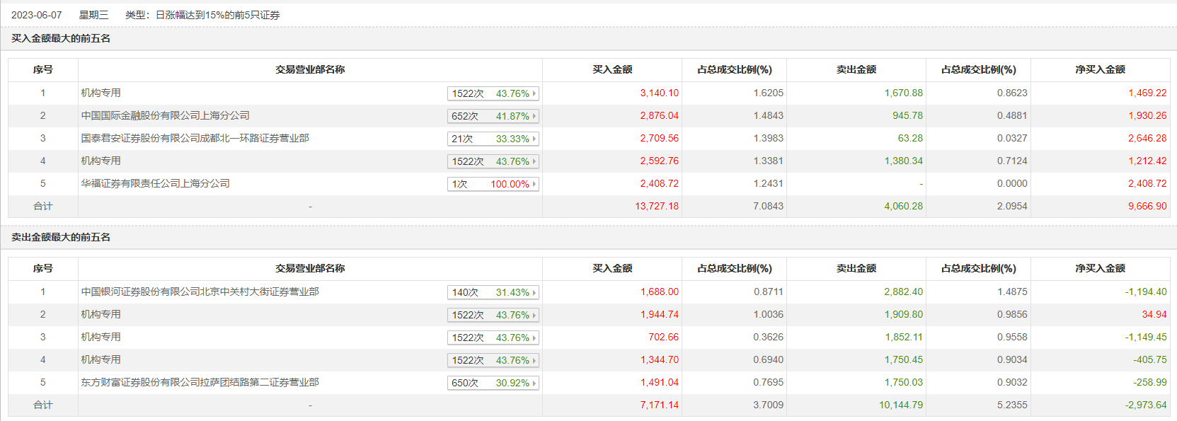 6月7日,恒信东方今日涨停,龙虎榜数据显示,上榜营业部席位全天成交3.51亿元,占当日总成交金额比例为18.12%。其中,买入金额为2.09亿元,卖出金额为1.42亿元,合计净买入6693.26万元。