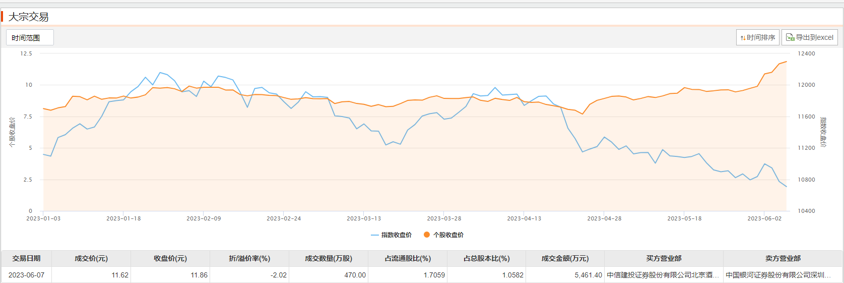 科力尔6月7日大宗交易成交470万股,成交额5461.4万元,占当日总成交额的6.87%,成交价11.62元,较市场收盘价11.86元折价2.02%。